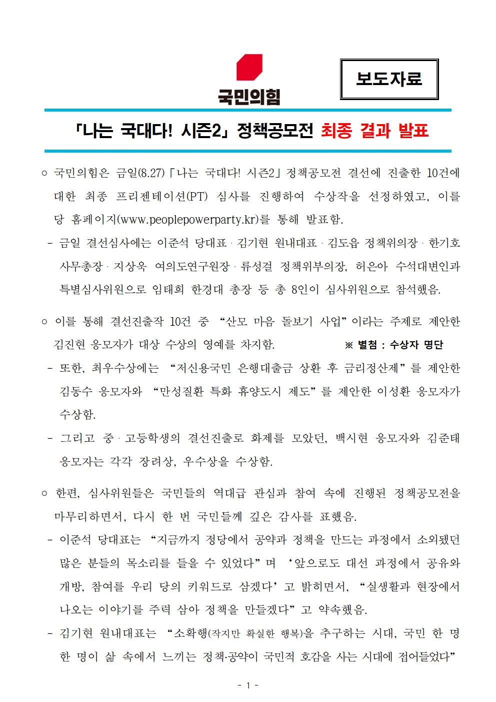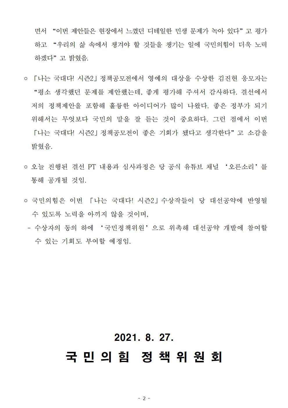 210827 [보도자료] 「나는 국대다! 시즌2」 정책공모전 최종 결과 발표.hwp