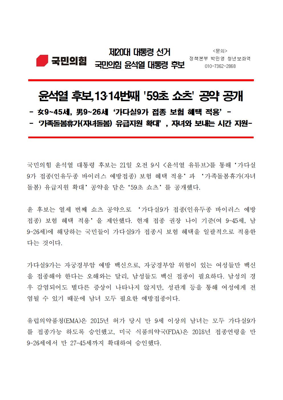 220121_보도자료_윤석열 후보_59초 쇼츠 공약(13-14편).hwp