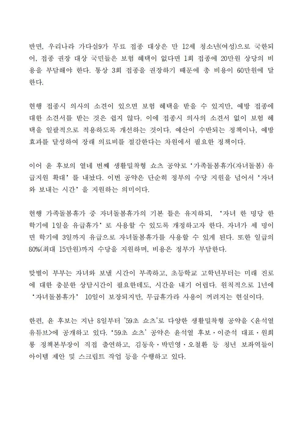 [보도자료] 윤석열 후보, 13·14번째 '59초 쇼츠' 공약 공개