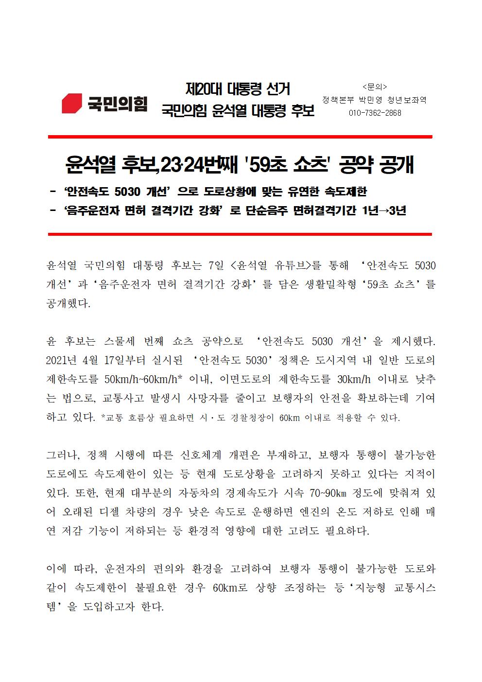 [보도자료] 윤석열 후보, 23·24번째 '59초 쇼츠' 공약 공개