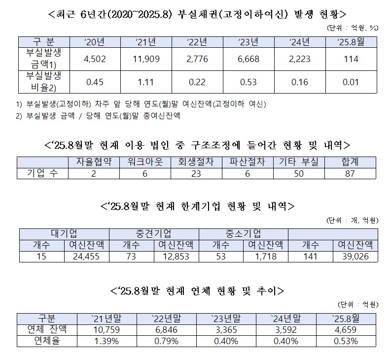 박성훈 의원은 “과도한 한계기업 여신과 연체율 반등은 잠재적 부실 확대의 신호”라며 “선제적인 리스크 관리에 나서야 한다”고 강조했다. /끝/